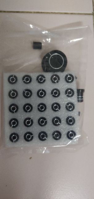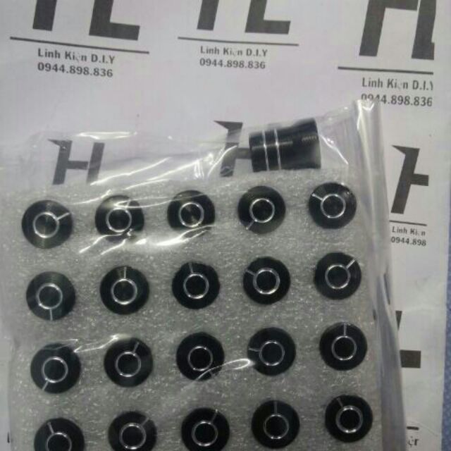 Bộ Núm nhôm mặt trước Ampli gồm 26 núm- Sử dụng lắp mặt trước Ampli mic 6 volume chú ý mẫu nhôm này chỉ lắp được cho chiết áp dạng tròn hoa thị không dùng được cho chiết áp chặt góc khuyết.