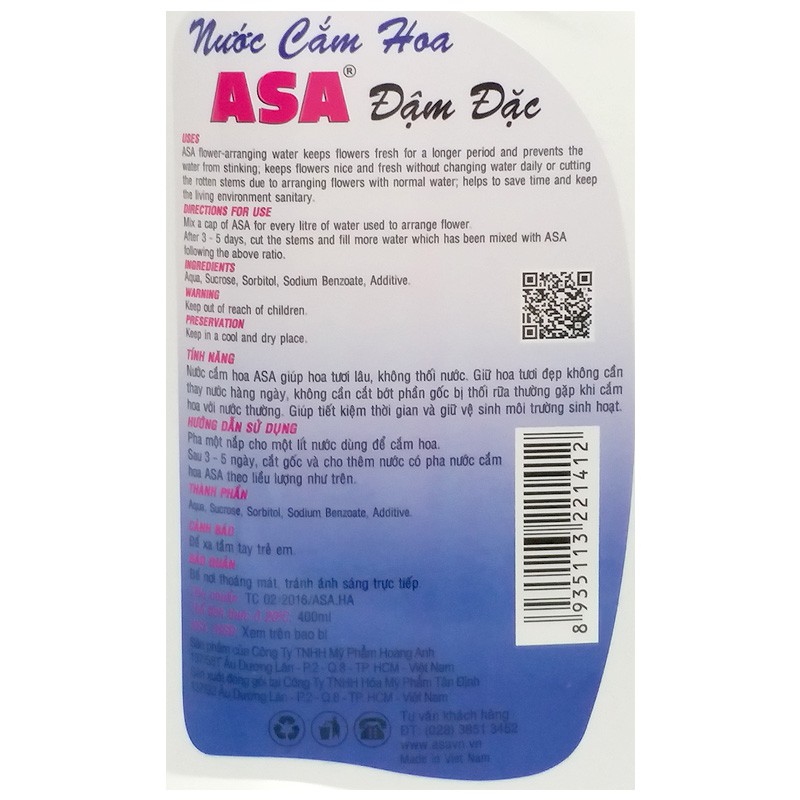 NƯỚC CẮM HOA ASA 400ML ĐẬM ĐẶC 200%"GIỮ HOA TƯƠI LÂU , KO THỐI NƯỚC" BẠN CỦA CHỊ EM NỌI TRỢ
