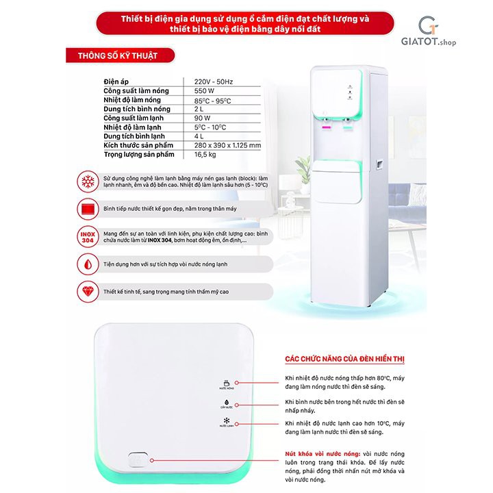 Giới thiệu Cây nước nóng lạnh chính hãng Daikiosan hút bình DKD000001