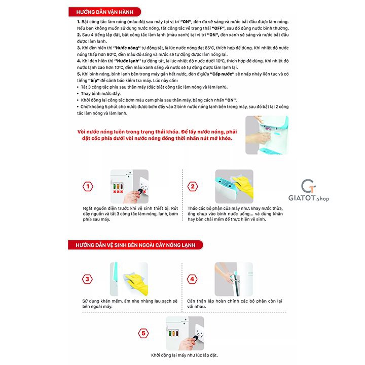 Nhiệt độ nước nóng: 85 - 95 (độ C)