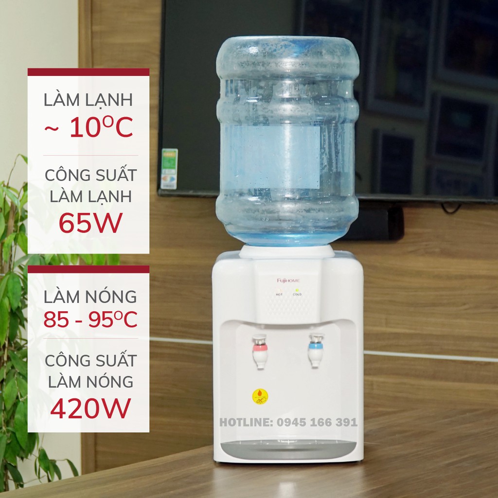 Cây nước nóng lạnh để bàn Nhập Khẩu Fujihome WD5510E, bình lọc tủ máy lọc nước nóng lạnh mini uống công nghệ Nhật Bản
