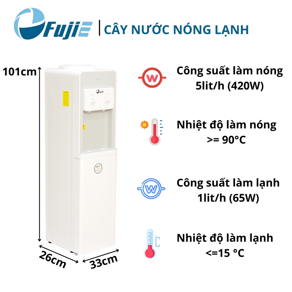 Cây nước nóng lạnh FujiE WD1850E công nghệ Nhật Bản làm lạnh điện tử, Bảo hành chính hãng 24 tháng, đạt chuẩn quốc tế