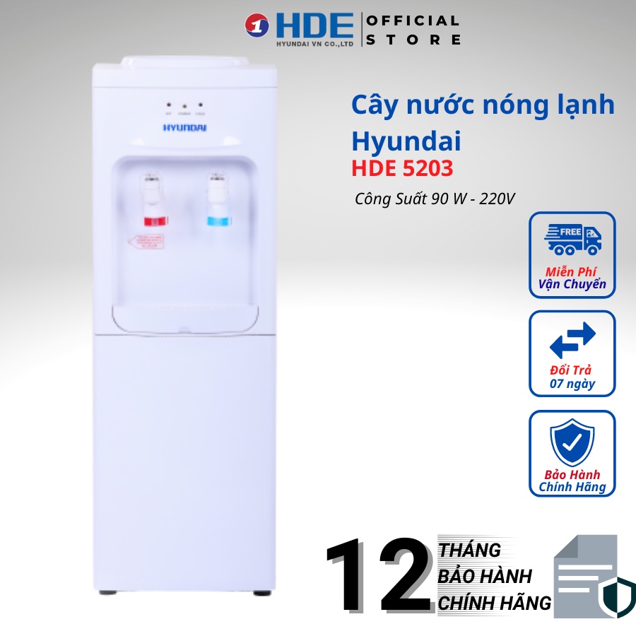 Cây nước nóng lạnh Hyundai Hàn Quốc HDE 5203W, tự động ngắt an toàn tiết kiệm điện- Bảo hành 12 tháng