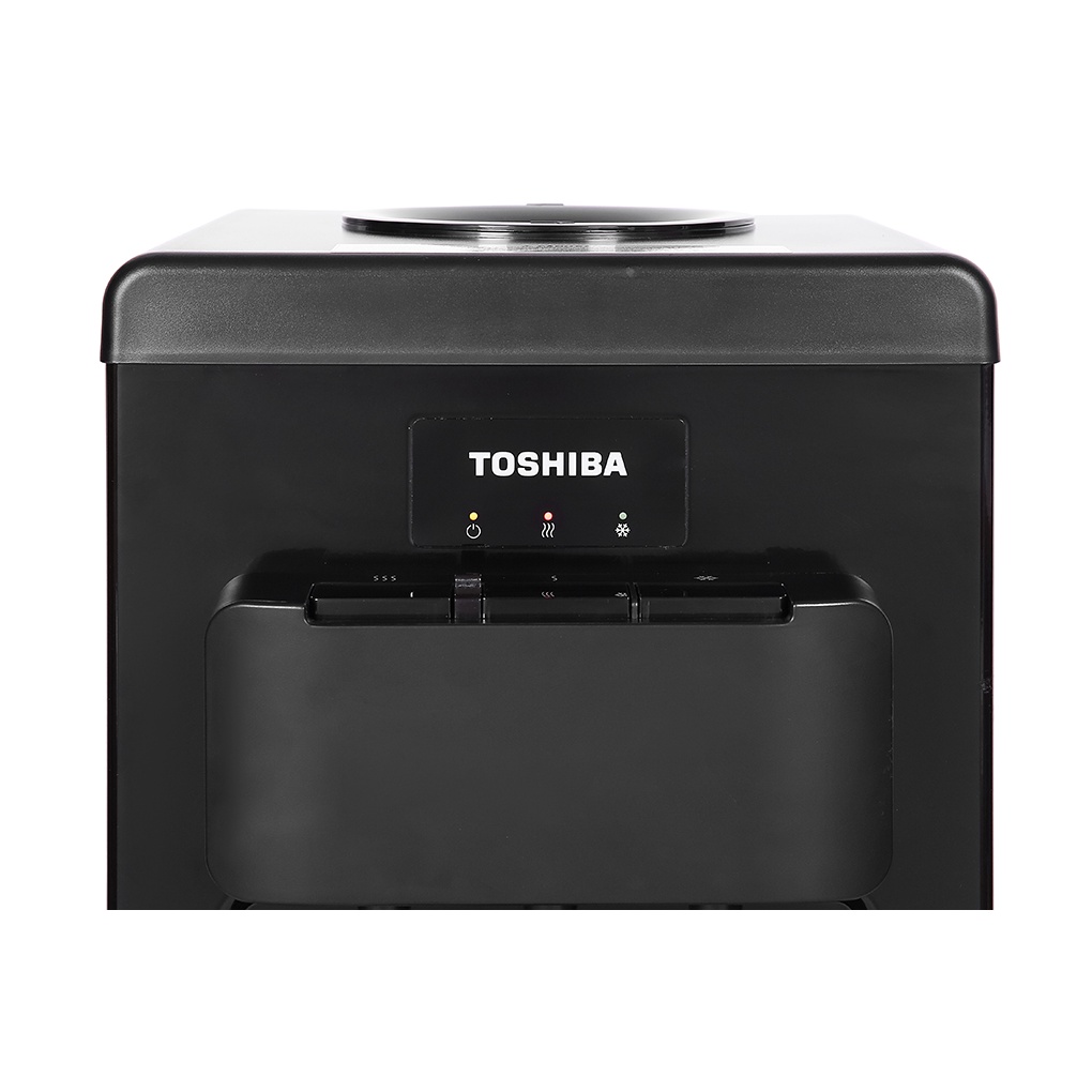 Kiểu dáng cây nước nóng lạnh Toshiba hiện đại, màu đen thanh lịch, kết cấu chắc chắn, tạo điểm nhấn cho không gian phòng khách, phòng làm việc, phòng bếp gia đình, công ty.