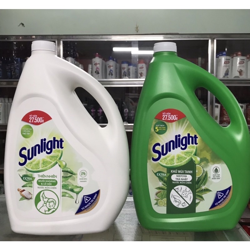 1. Nước rửa chén Sunlight Thiên nhiên-Muối Khoáng & Lô Hội (trắng) với chiết xuất thiên nhiên phù hợp cho chén đĩa trẻ em, dịu nhẹ cho da tay2. Nước rửa chén Sunlight Khử mùi tanh-Matcha Trà Nhật (xanh) khử sạch 5 mùi tanh khó chịu, cho chén đĩa sạch bong dầu mỡ
