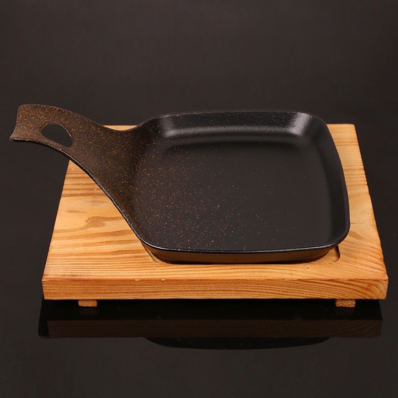 Bản nướng gang hình cuốc cách điệu kèm đế gỗ KT 26.5x 20.5 x8cmbản nướng gang cách điệu