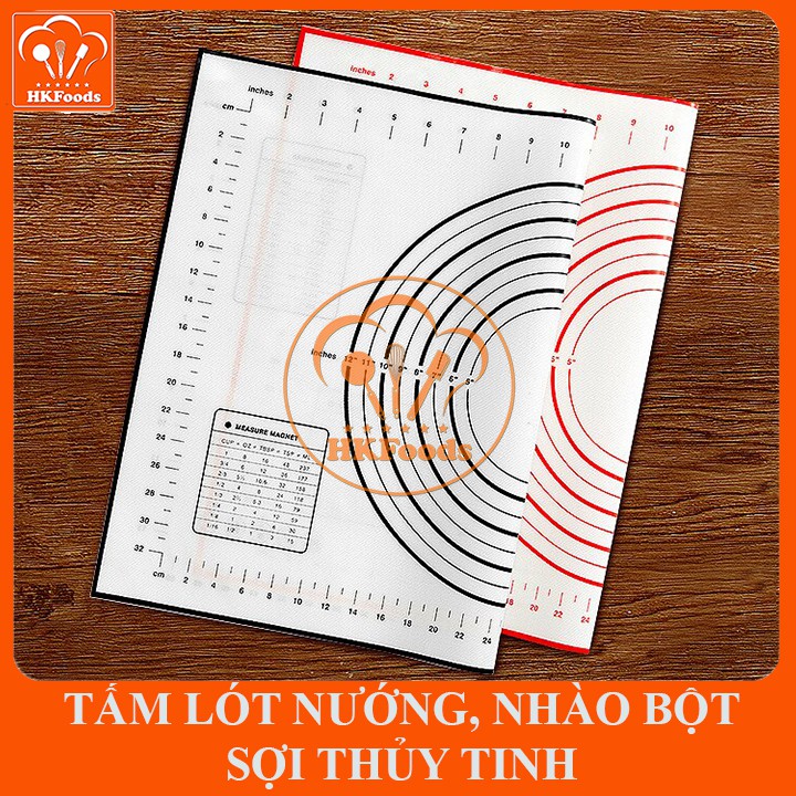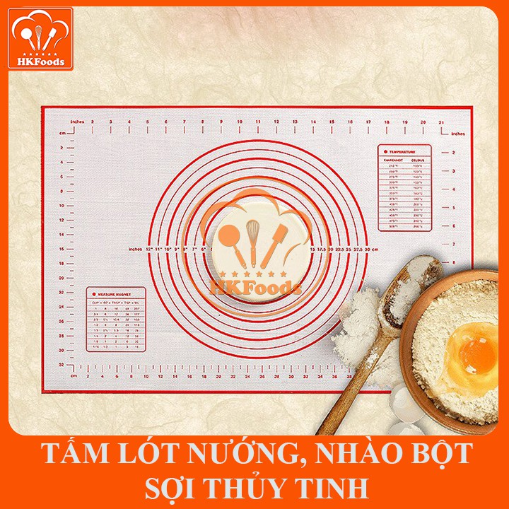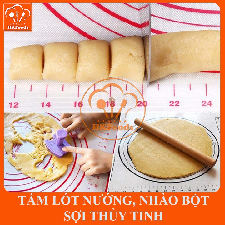 Tấm lót nhào bột silicon sợi thủy tinh là vật dụng không thể thiếu đối với các cô nàng yêu bếp bánh nhé. Với chất liệu silicon an toàn