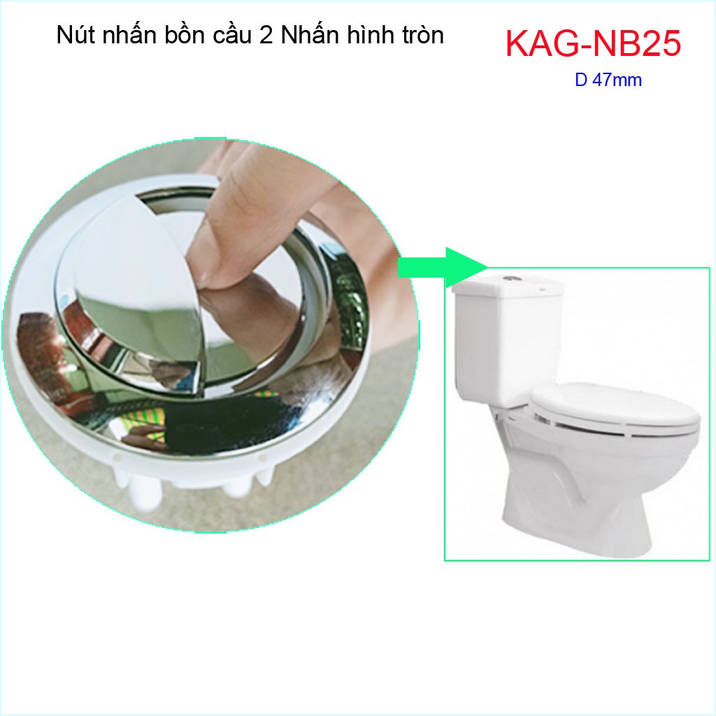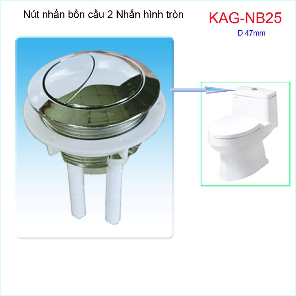 Nút 2 nhấn xả bồn cầu, nút nhấn cầu xả 2 nhấn tròn, nút xả cầu Kace KAG-NB25Đường kính khoét sứ nút nhấn 4.7->5cm( 47->50mm)