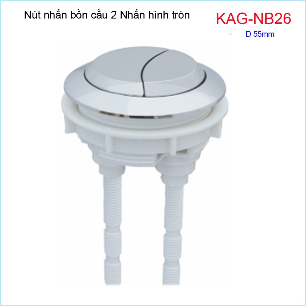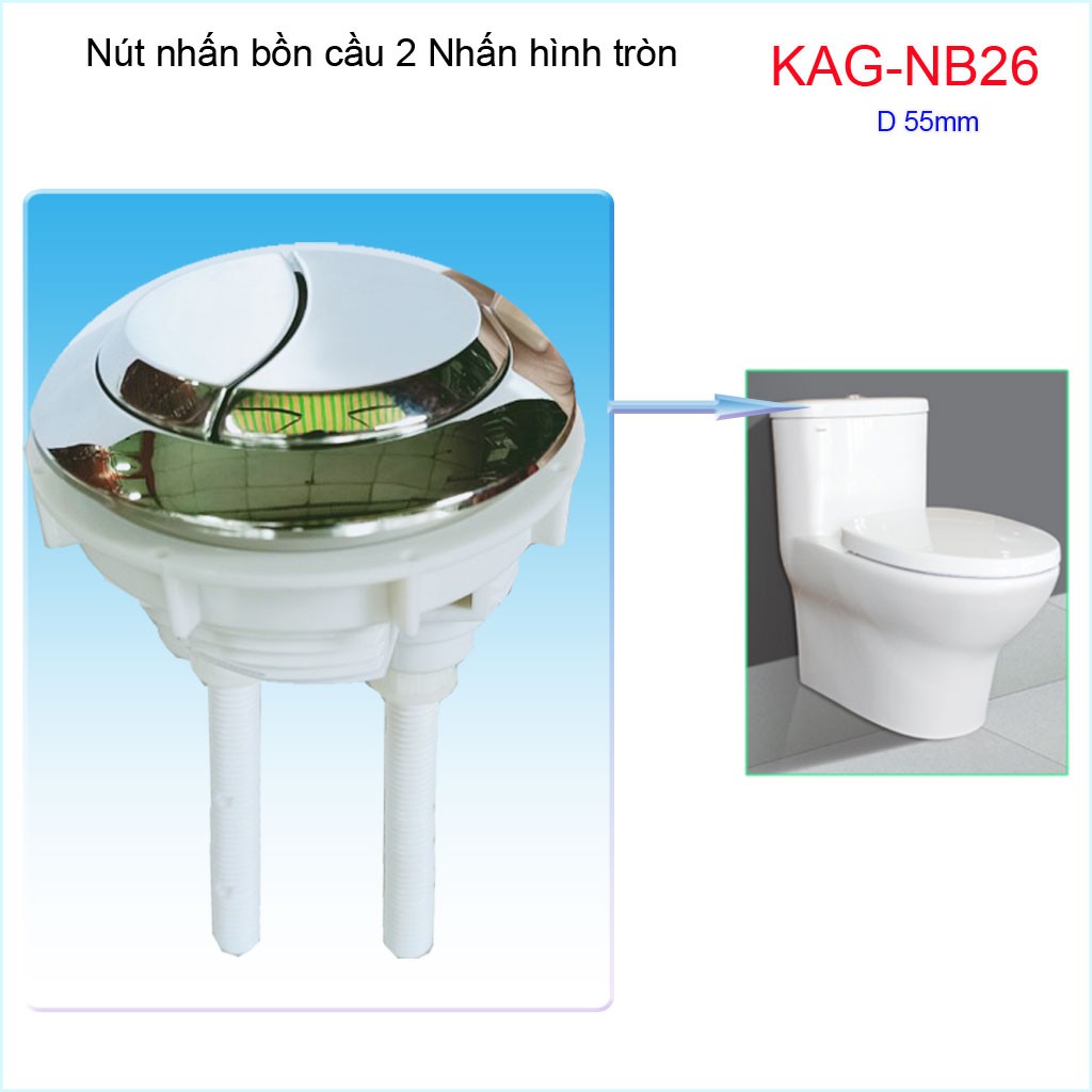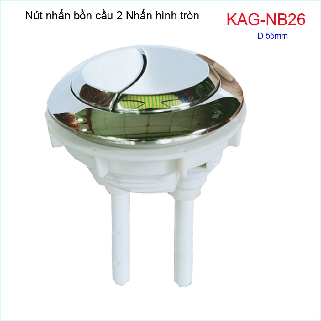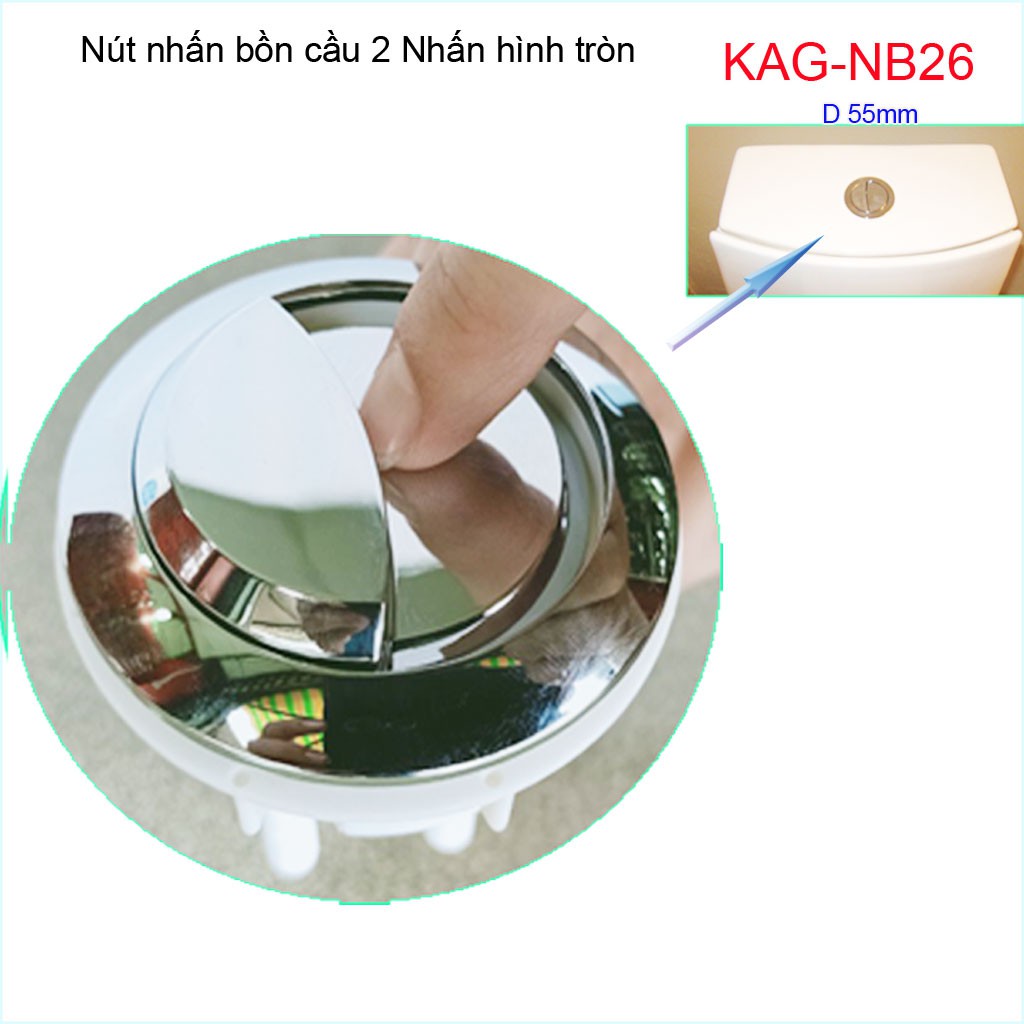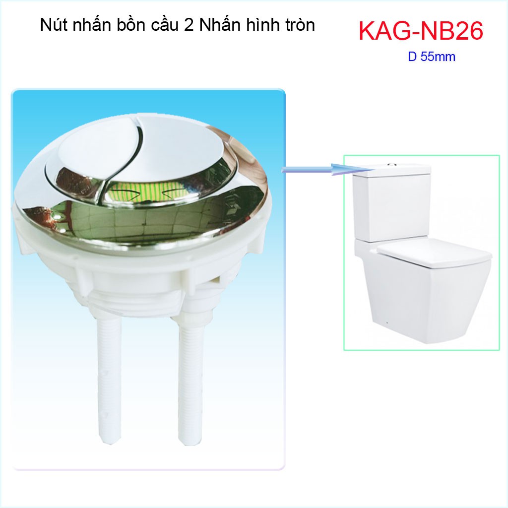 Nút 2 nhấn xả bồn cầu, nút nhấn cầu xả 2 nhấn tròn, nút xả cầu Kace KAG-NB26Đường kính khoét sứ nút nhấn 5.5->6cm( 50->60mm)