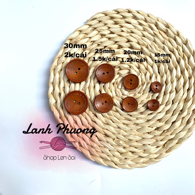 Sở thích & Sưu tầm > Dụng Cụ May Vá || Nút Áo Gỗ Tròn Màu Nâu (set 10 cái)Còn hàng