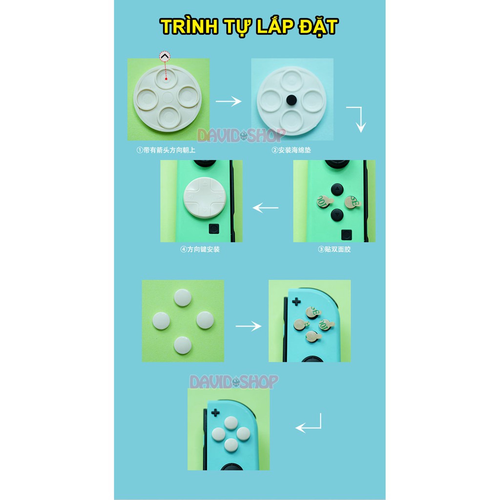 ✔ Bộ SP gồm: 2*miếng dán D-pad (hoặc 2 núm bọc), 8*miếng dán nút bấm, keo 2 mặt