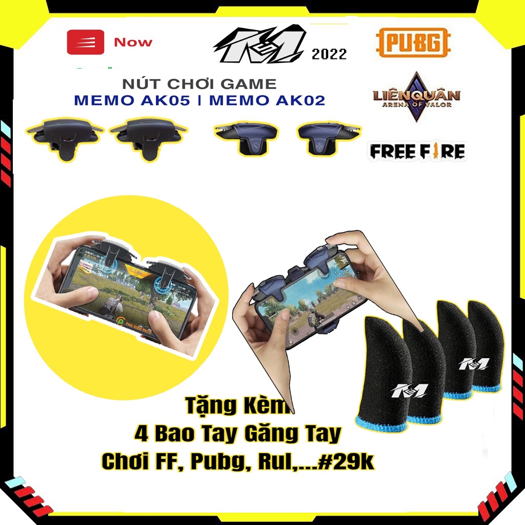 Nút bắn Pubg, FF, Rol mobile memo Ak05-AK02, nút bấm auto tap 30 nhịp/s , nút gaming tặng kèm 4 bao tay siêu nhạy game.