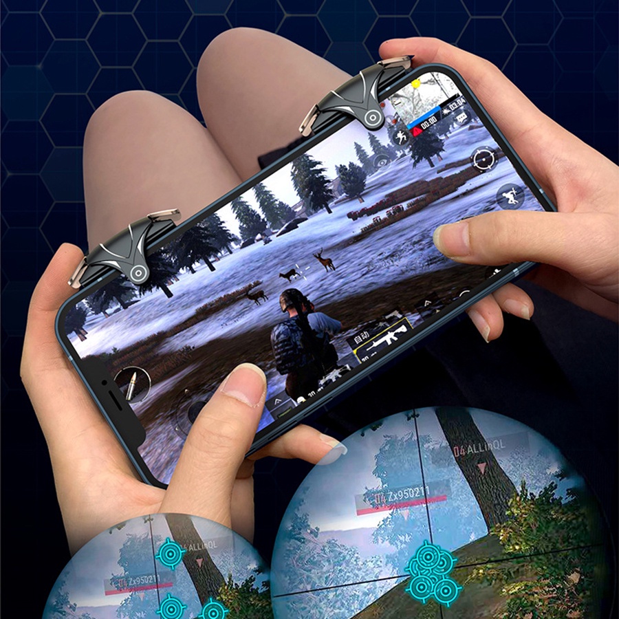 - Bộ nút bấm chơi game đa năng thích hợp cho các tựa game bắn súng trên điện thoại di động như Pubg, Free Fire, Fortnite, Knight Out,.. Giúp giảm thao tác tay của game thủ mà vẫn đạt được hiệu quả một cách tốt nhất, thoải mái ngắm bắn, canh mục tiêu và chạy né dễ dàng. Sử dụng loại phụ kiện chơi game này rất đơn giản, bạn chỉ cần gắn 2 chiếc nút bấm chơi game lên thân điện thoại khi chơi game và cài đặt lại game sao cho 2 nút ngắm bắn tương thích với vị trí trigger là bạn đã có thể chơi game với tỷ lệ bắn chính xác cao hơn.