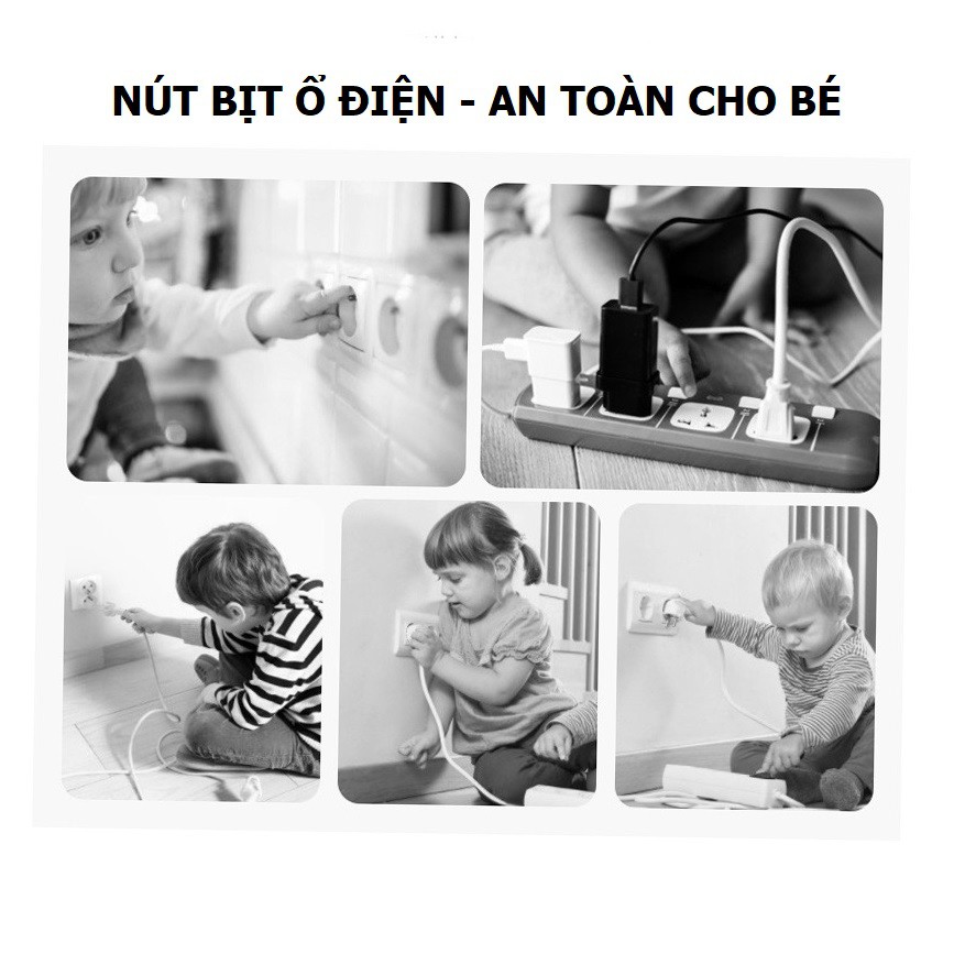 - Sản phẩm sẽ giúp che kín các lỗ của ổ cắm, nút bịt được cắm sâu vào ổ điện làm cho trẻ không thể cậy hoặc rút ra được, đảm bảo an toàn nếu chẳng may trẻ nghịch ổ điện.