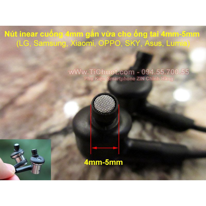 ✔️ Nút tai nghe inear có kích thước cuống (lõi) tai 4mm : Dùng cho các tai LG, Samsung, Xiaomi, OPPO, SKY, Asus, Lumia & các tai hãng khác có kích thước ống tai inear từ 4mm-5mm.