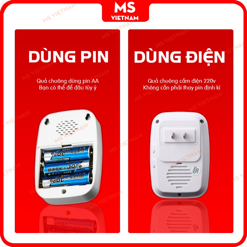 ❖ Nút bấm dùng pin 23A (đã lắp sẵn), loa phát có 2 loại: dùng pin 3 pin AA (pin tiểu) hoặc loại cắm điện trực tiếp 220v