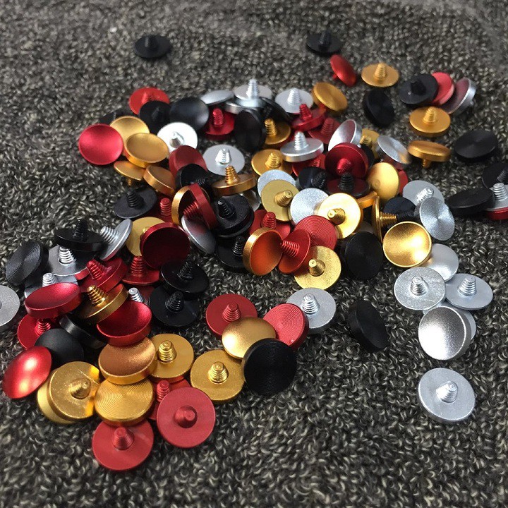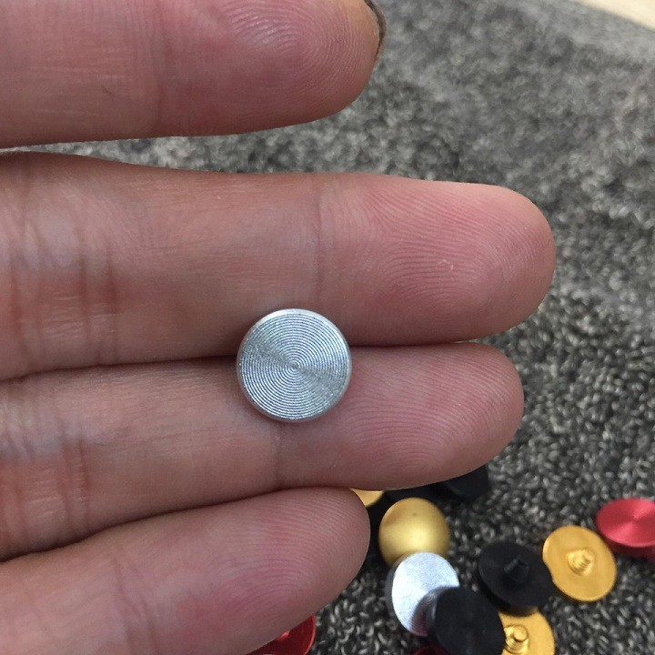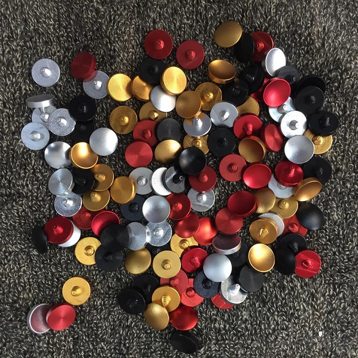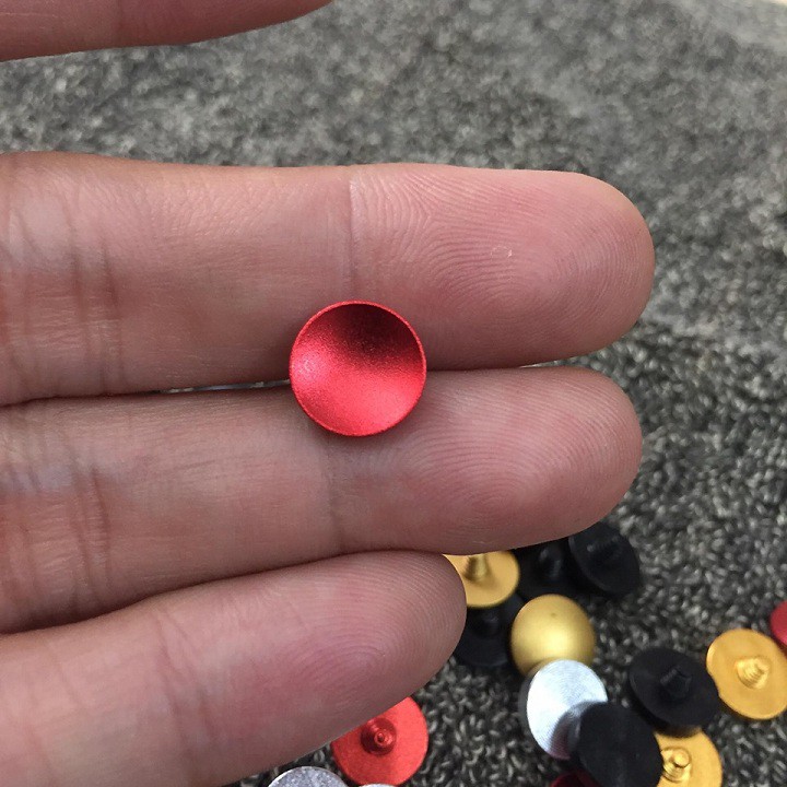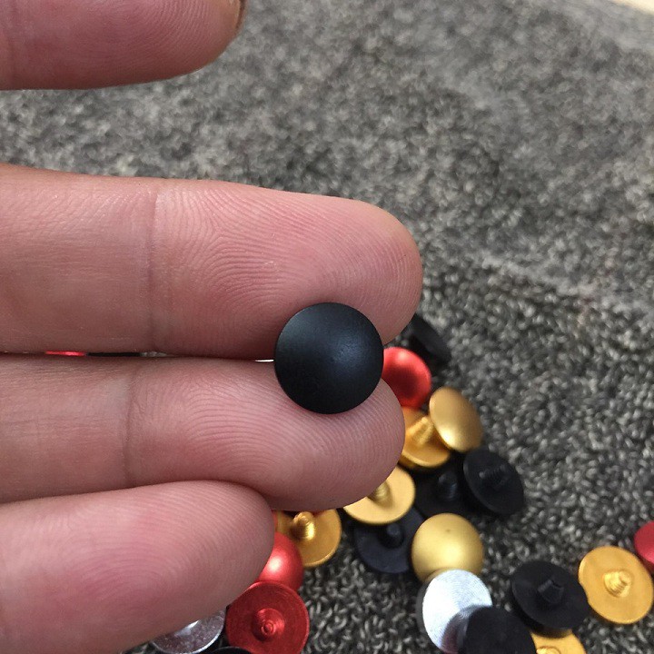 - Chất liệu kim loại cao cấp không rỉ sét, Có 3 màu : Đỏ, Đen, Bạc, Vàng (lồi, lõm và bằng)
