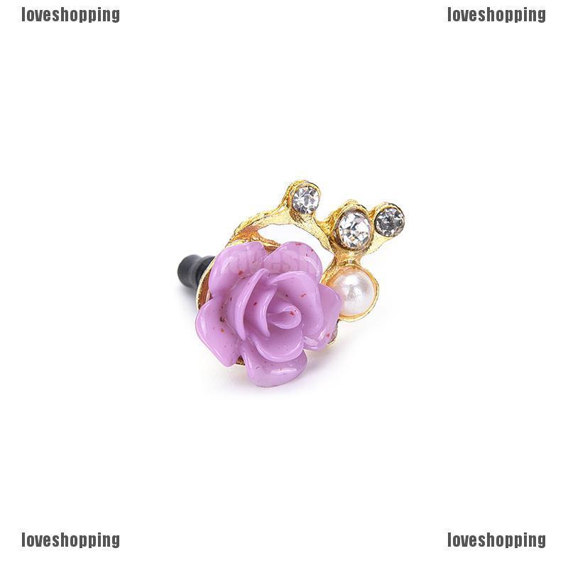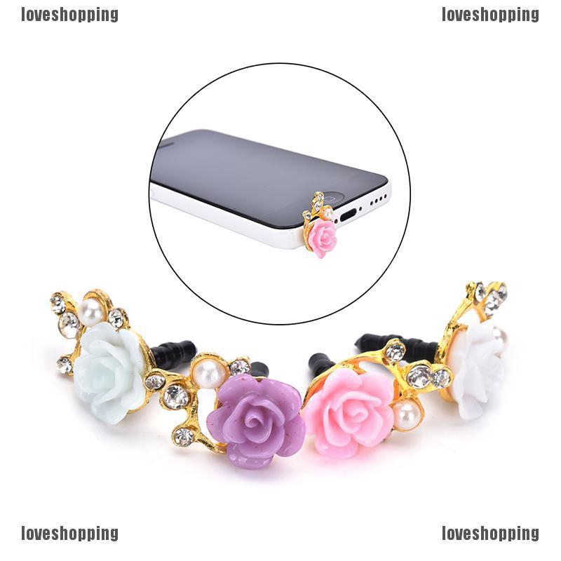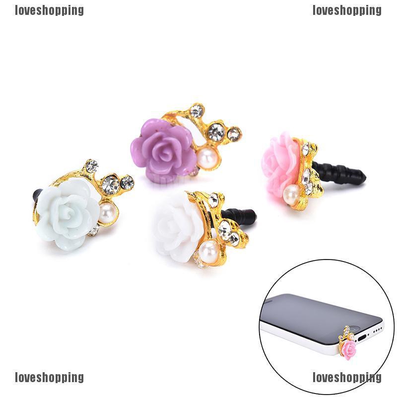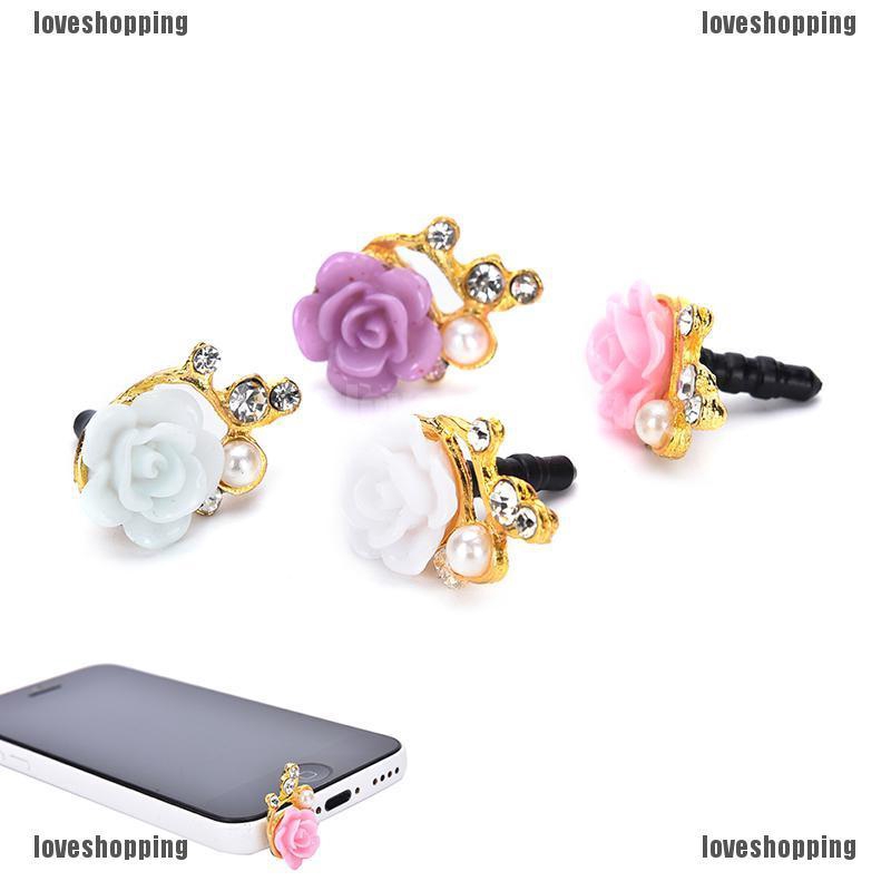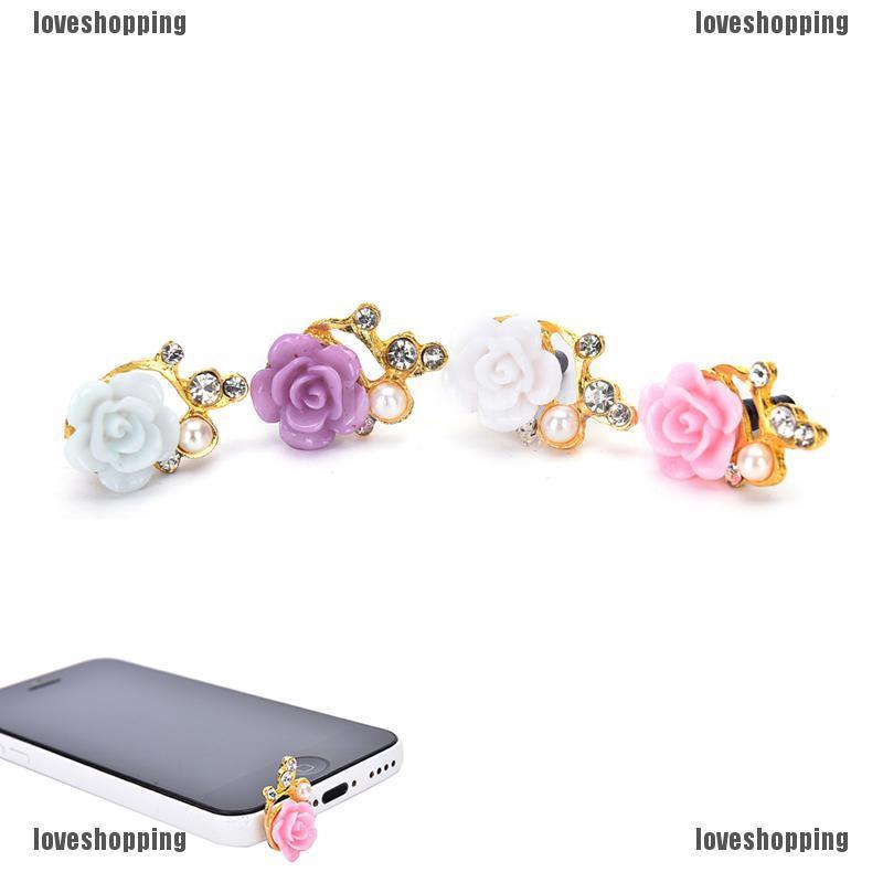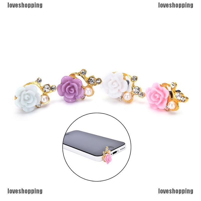 welcome to loveshopping1.vnNút đậy chống bụi hình hoa hồng đính đá xinh xắn cho điện thoại