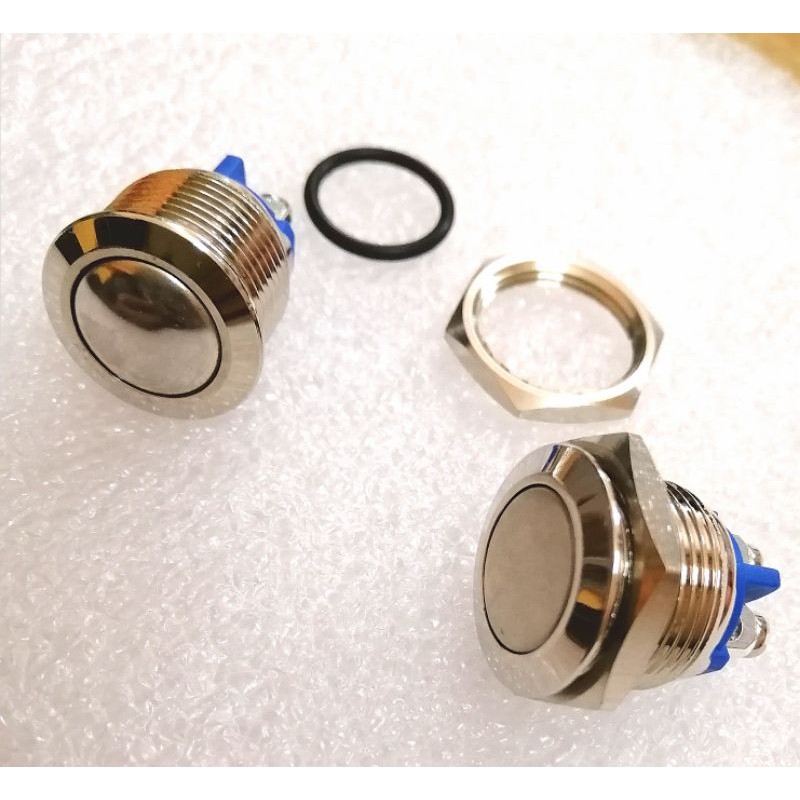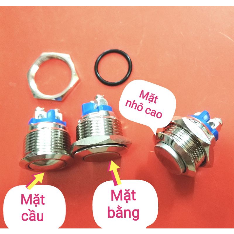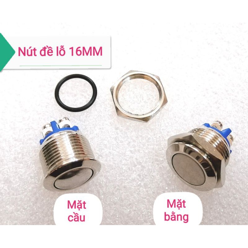 Nút đề, nút nhấn nhả, khởi động, nút reset kim loại tiếp điểm bạc thường mở, khoét lỗ mặt vỏ 16MM, có ốc và đệm cao su chống nước. 2 chân có lỗ gài dây, ốc siết giữ cố định.Loại 1: Mặt nút hình nhãn cầu