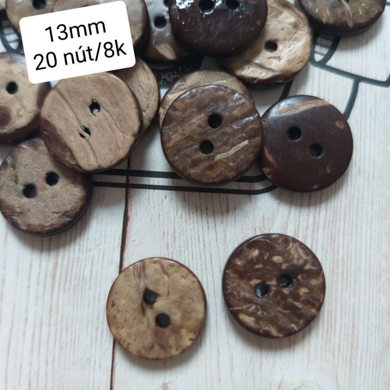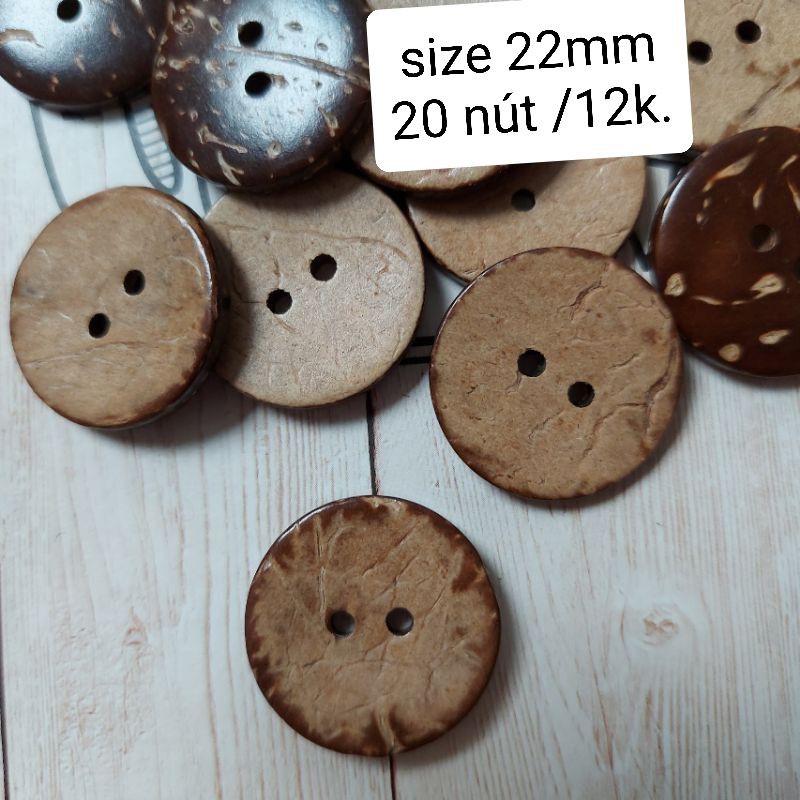 Sở thích & Sưu tầm > Dụng Cụ May Vá || Nút dừa , size 2.2cm và 2.5cm (1 bịch/20 nút)Còn hàng