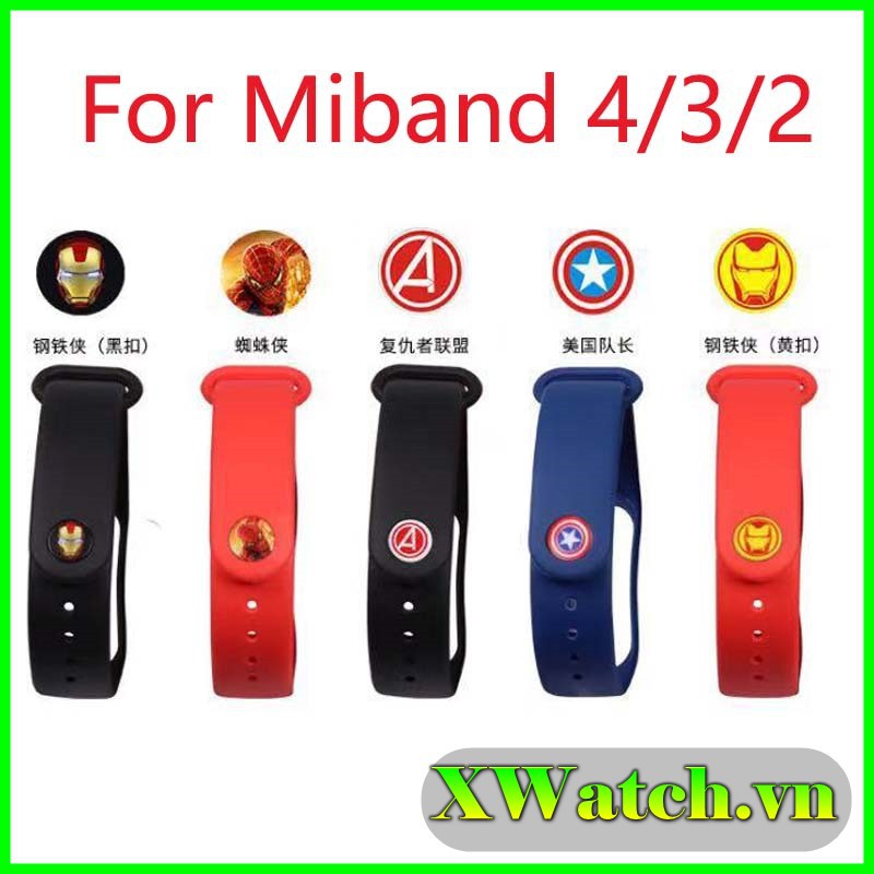 Nút gắn vòng đeo tay thông minh Xiaomi Miband 2 3 4 5 hình siêu anh hùng Avengers