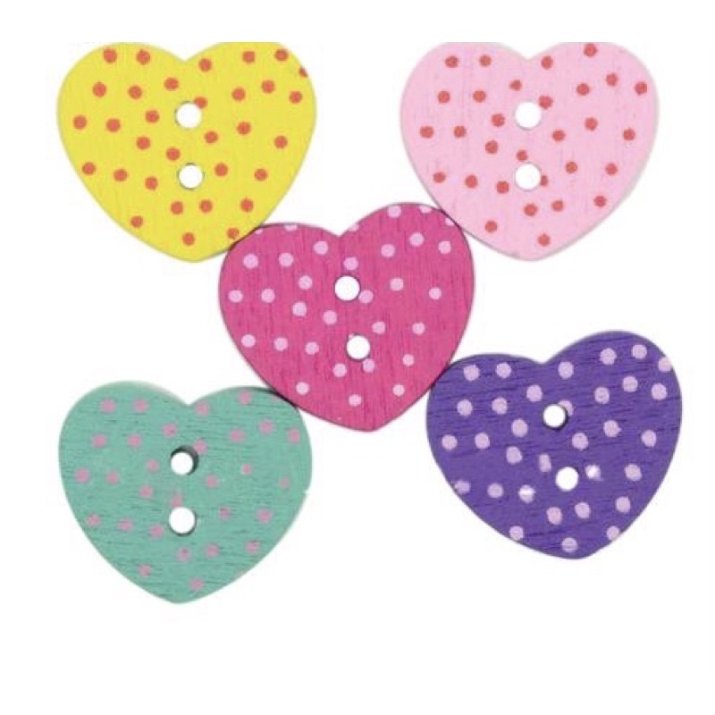Sở thích & Sưu tầm > Dụng Cụ May Vá || Nút gỗ hình trái tim sắc màu - Túi 10 cáiCòn hàng