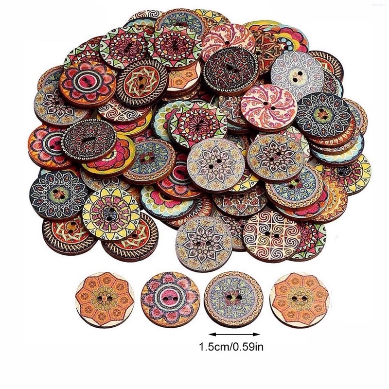 Sở thích & Sưu tầm > Dụng Cụ May Vá || Nút gỗ hoạ tiết retro độc đáoCòn hàng
