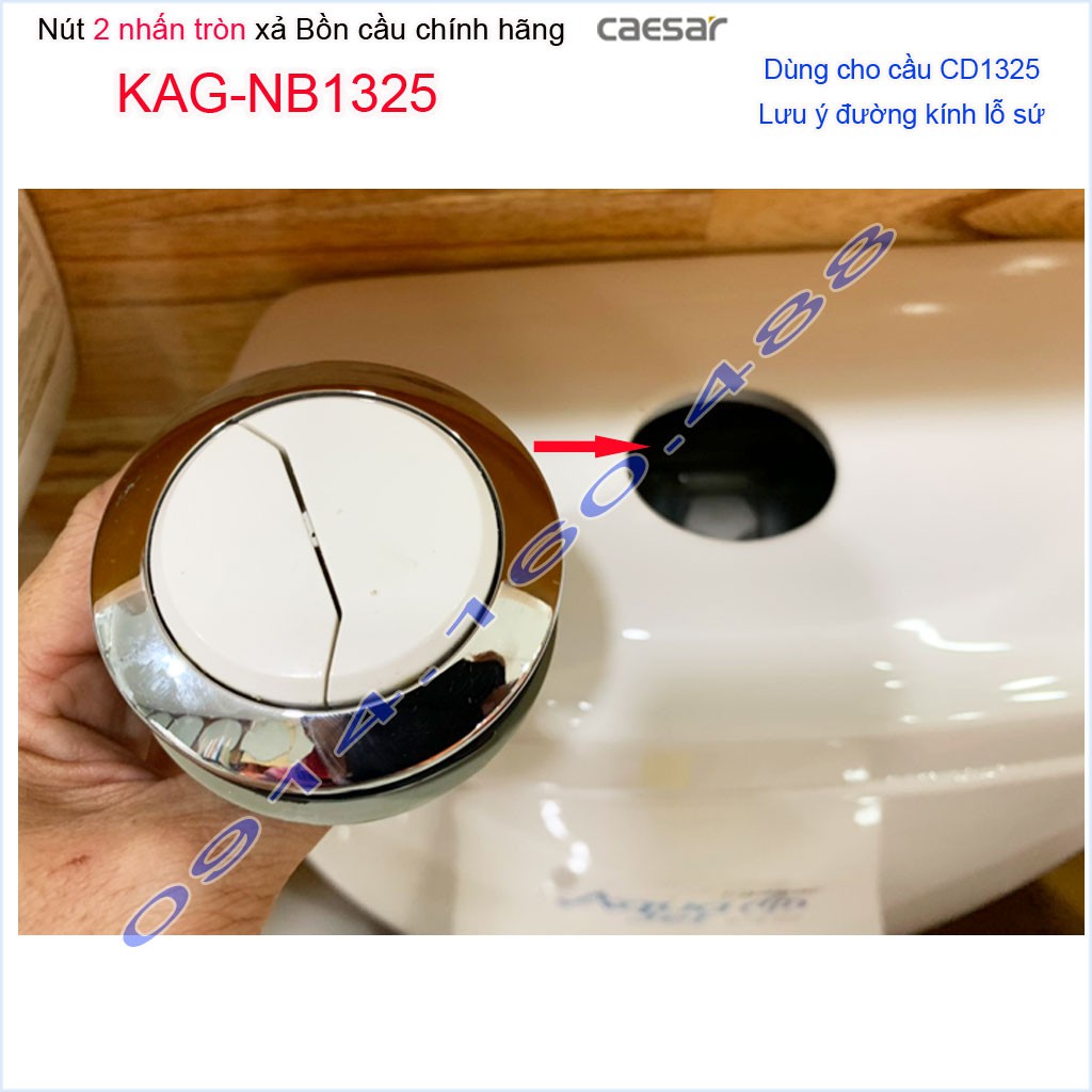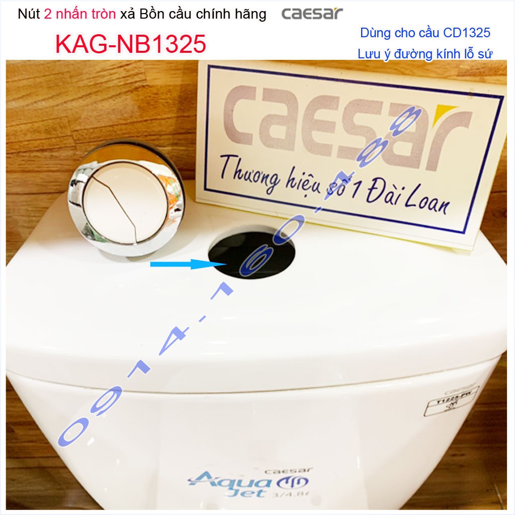 Nhà cửa & Đời sống > Đồ dùng phòng tắm > Bồn cầu, ghế và nắp bồn cầu || Nút nhấn bồn cầu Caesar KAG-NB1325 hình tròn lỗ sứ 57mm (5.7cm), Ấn xả 2 nhấn xí bệt CD1325 nhấn mạ chrome sử dụng tốtCòn hàng