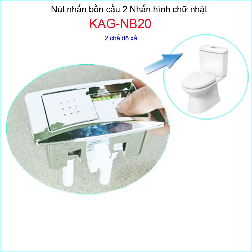 Chất liệu: Nút 2 nhấn xả bồn cầu, nút nhấn cầu xả 2 nhấn Kace KAG-NB20 sản xuất bằng nhựa mạ chrome sáng bóng, sản phẩm bao gồm 2 cây ti nhấn