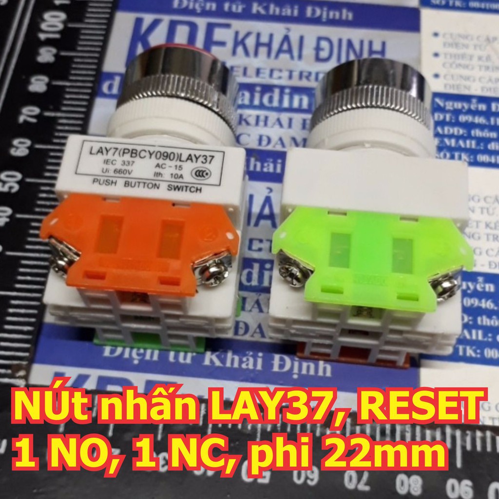 Nhà cửa & Đời sống > Dụng cụ nhà bếp > Dụng cụ mở hộp || Nút nhấn công nghiệp RESET, ấn nhả LAY37 (PCBY090), 1 thường đóng, 1 thường mở, phi 22mm, có 6 màu kde5581Còn hàng