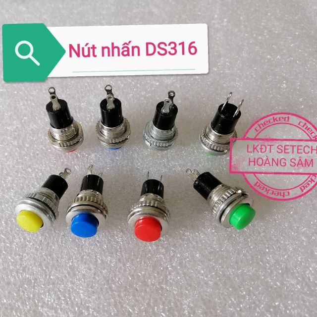 Nút nhấn reset DS-316: Kiểu ấn nhả (không giữ) tiếp xúc thường mở, làm nút nhấn nhả, nút đề, nút reset kiểu chuông cửa v.v.- Màu sắc :xanh lá, vàng, đỏ, xanh dương