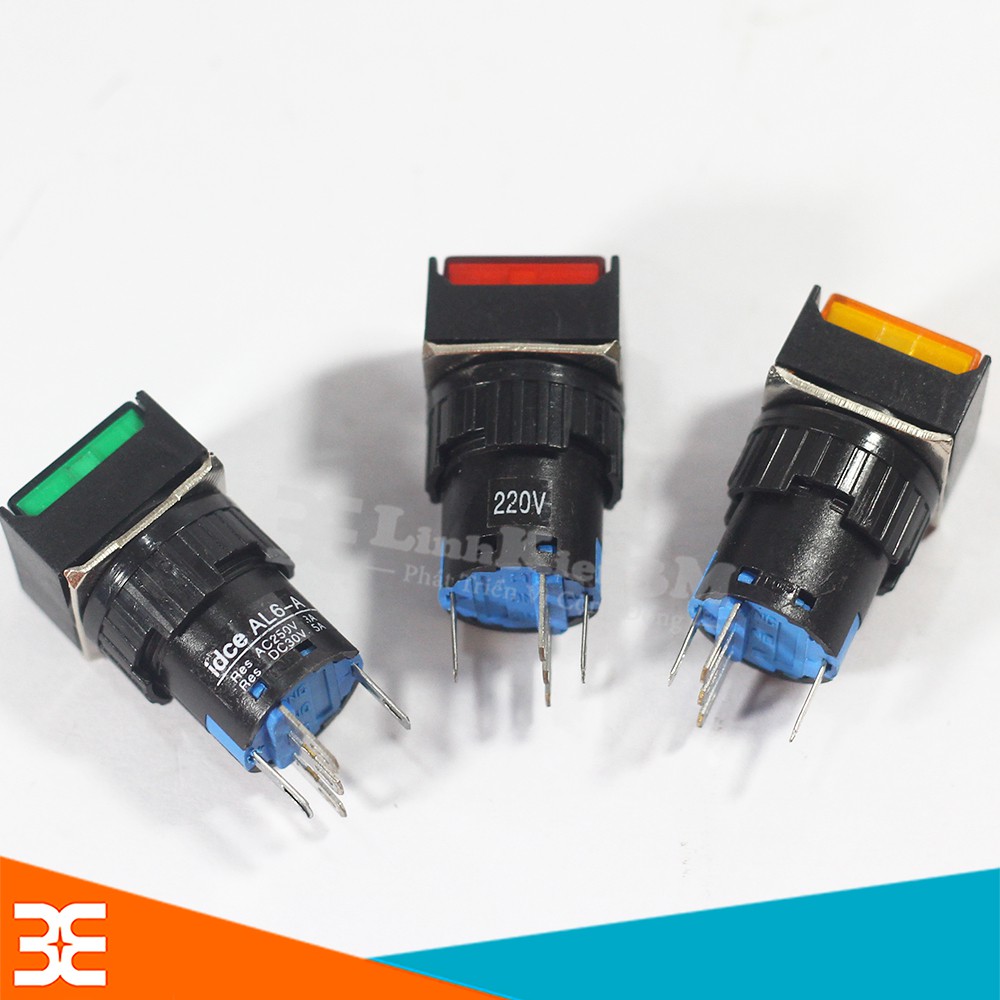 Giới thiệu Nút Nhấn Đề Vuông 220VAC AL6 - A Nhấn Giữ Có Đèn