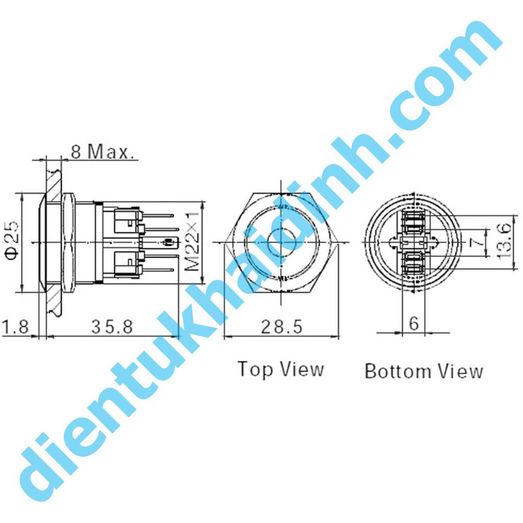 Giới thiệu nút nhấn inox ON/OFF, nhấn giữ chống nước, dạng tròn khoét lỗ 22mm, GQ22 đầu phẳng, led vòng tròn có 5 màu kde5896