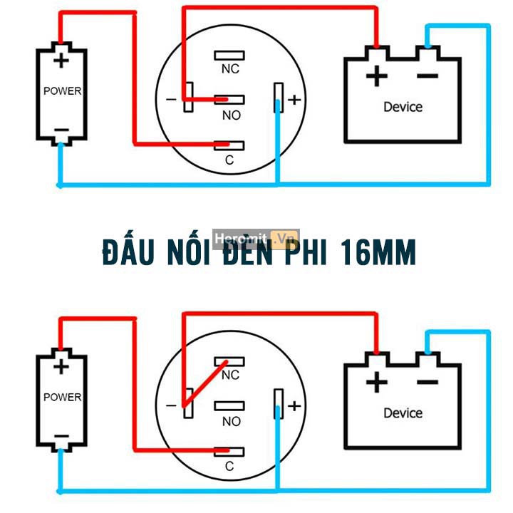 + Nút nhấn kim loại 16mm là nút nhấn dạng thường mở, có đèn led