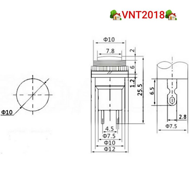 - Nút nhấn tự nhả làm bằng kim loại và nhựa- Đường kính lắp nút: phi 10mm