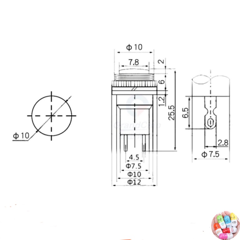 - Đường kính 10mm, Chiều cao 25.5mm
