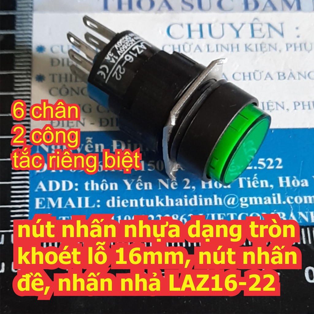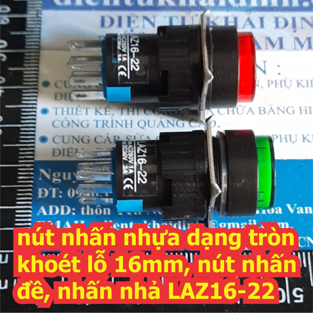 Giới thiệu nút nhấn nhựa dạng tròn khoét lỗ 16mm, nút nhấn đề, nhấn nhả LAZ16-22 màu đỏ / xanh lá kde6769