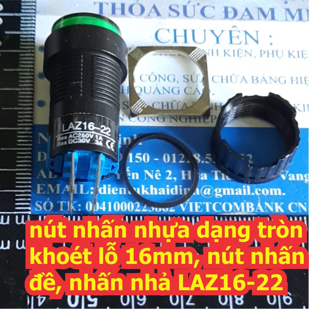 nút nhấn nhựa dạng tròn khoét lỗ 16mm, nút nhấn đề, nhấn nhả LAZ16-22 màu đỏ / xanh lá kde6769