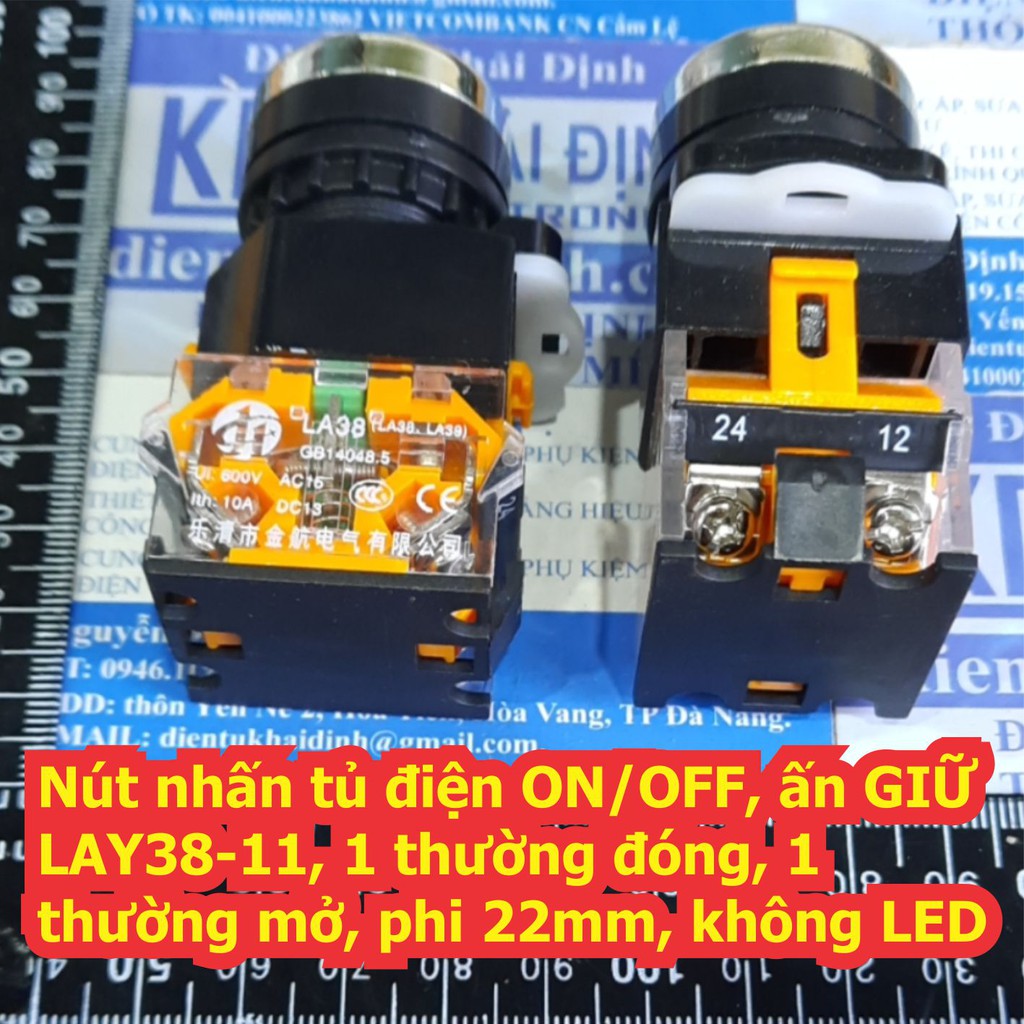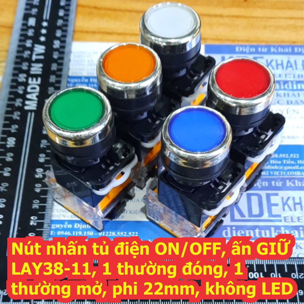 Nút nhấn tủ điện ON/OFF, ấn giữ LAY38-11S, 1 thường đóng, 1 thường mở, phi 22mm, không LED có 5 màu kde7250