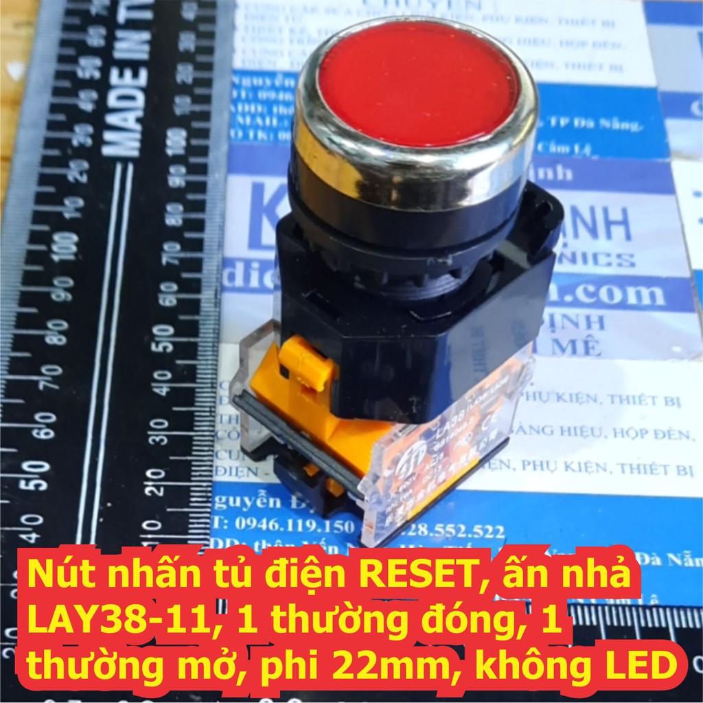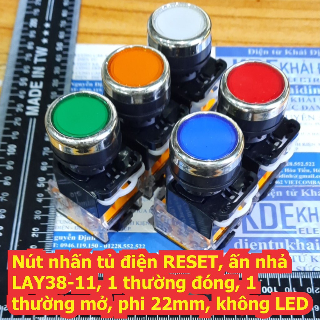 Nhà cửa & Đời sống > Dụng cụ nhà bếp > Dụng cụ mở hộp || Nút nhấn tủ điện RESET, ấn nhả LAY38-11, 1 thường đóng, 1 thường mở, phi 22mm, không LED có 5 màu kde7245Còn hàng