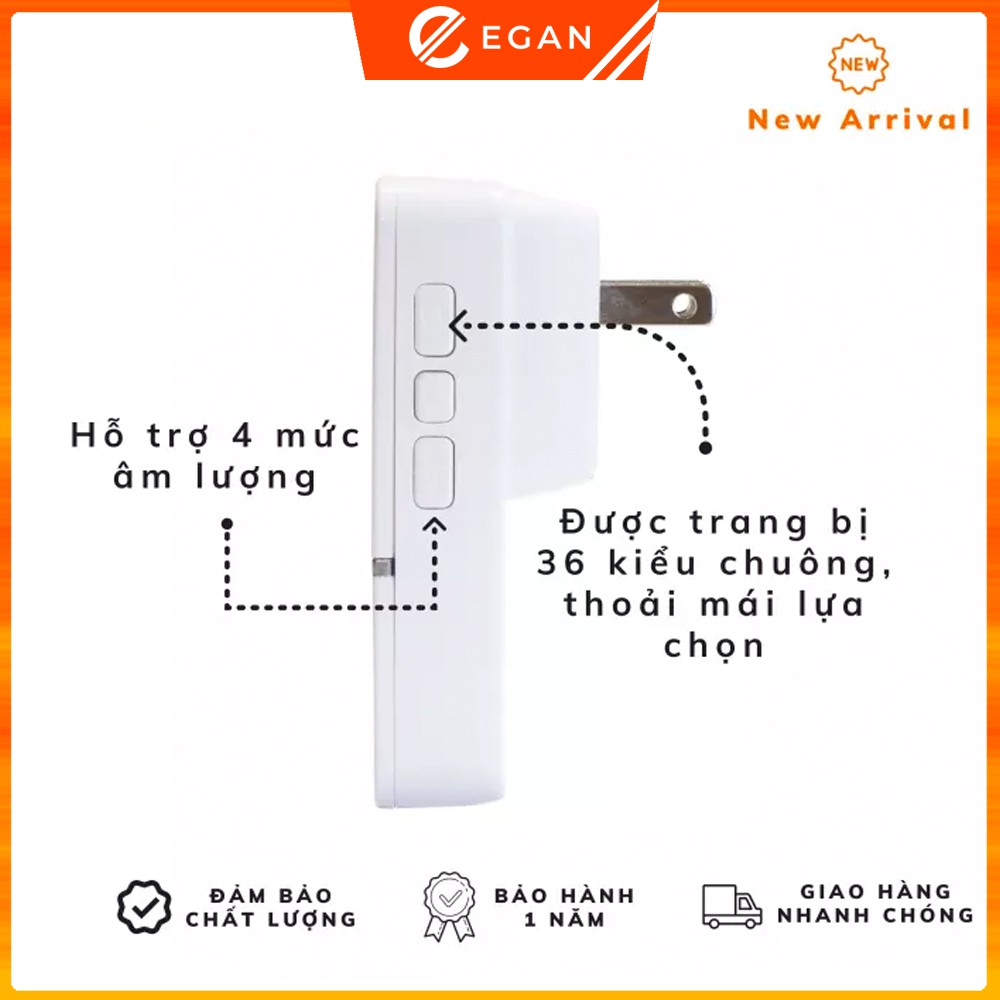 - Giao tiếp không dây, hỗ trợ 36 kiểu chuông, 4 mức âm lượng