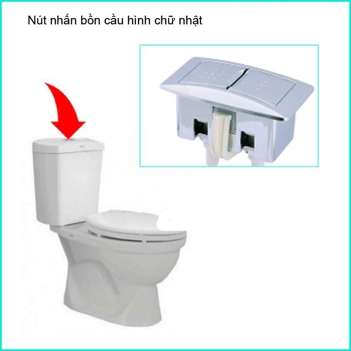 Nút nhấn xả bồn cầu 2 nhấn hình chữ nhậtThay thế khi bồn cầu nhà bạn bị kẹt nút nhấn, khi nhấn nút không bật lên, nếu kiểm tra cụm xả bình thường thì hãy thay ngay nút nhấn xả bồn cầu.