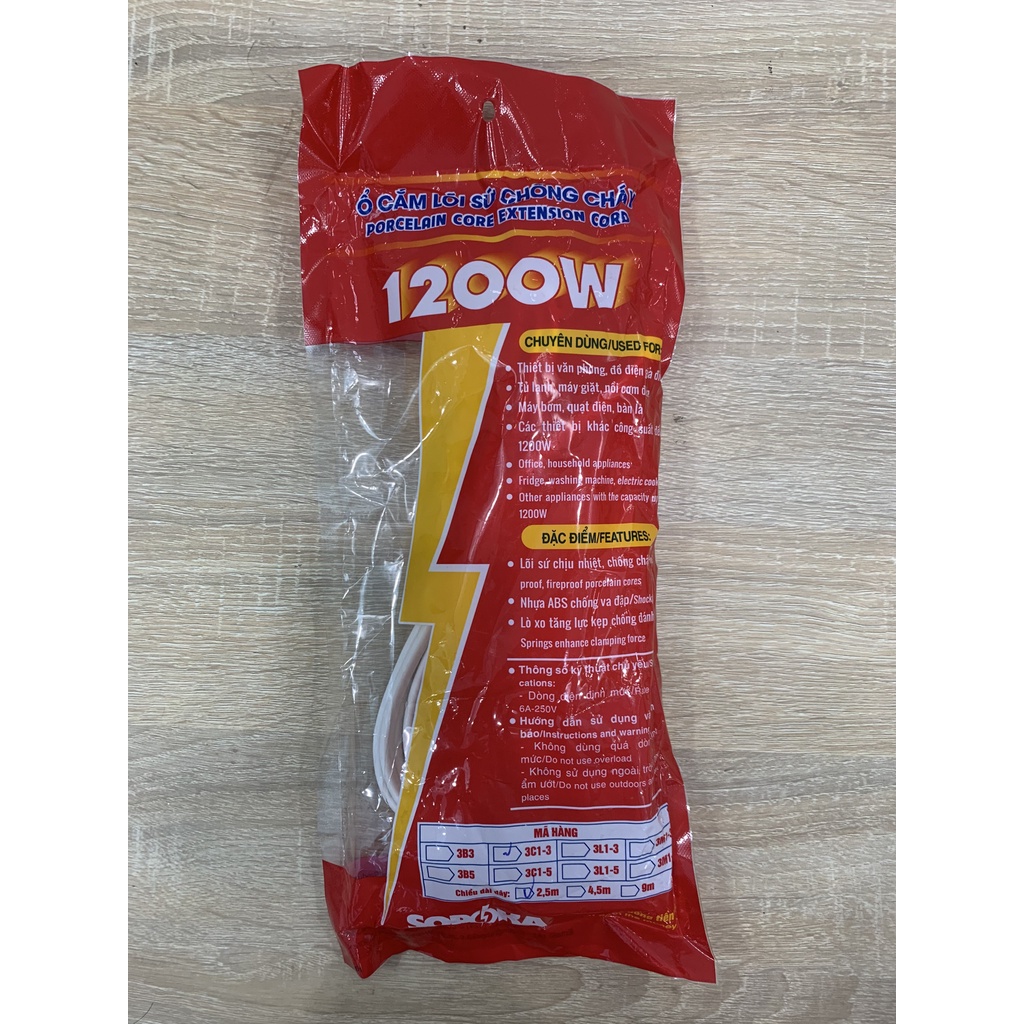 Thiết Bị Điện Gia Dụng > Mạch điện & Phụ tùng > Ổ cắm điện & Dây nối || Ổ 3 cửa chịu tải 1200W SOPOKA 3 ổ cắm 2 chấu dây 2,5M-4,5M - Điện gia dụng Hoàng KimCòn hàng