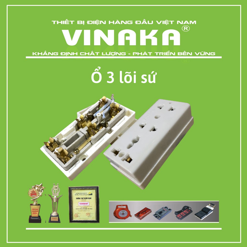 Ổ 3 lỗ cắm đa năng, chịu tải, chống cháy, ổ cắm lõi sứ chịu nhiệt cao VINAKA - A3S