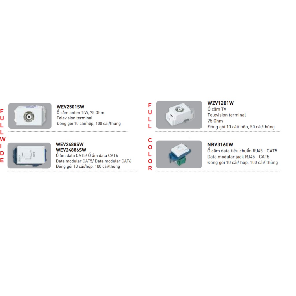 Thiết Bị Điện Gia Dụng > Mạch điện & Phụ tùng > Ổ cắm điện & Dây nối || Ổ Anten Ổ Mạng Panasonic Full Color WideCòn hàng