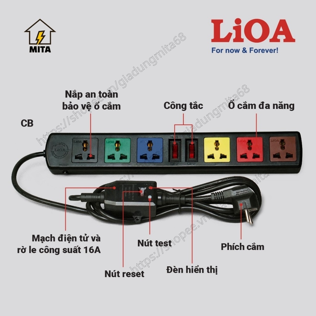 Giới thiệu Ổ cắm điện LiOA đa năng chống giật, ổ điện chống rò điện LiOA 3/4/6/8D33N-CG - MITA