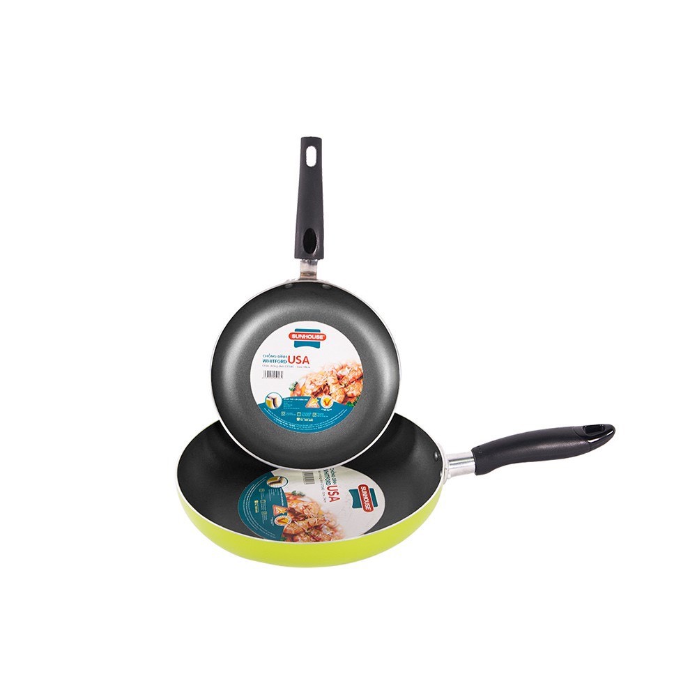 Nhà cửa & Đời sống > Dụng cụ nhà bếp > Nồi || Chảo cặp nhôm trơn cạn Sunhouse phi 18 + 24 xanhCòn hàng