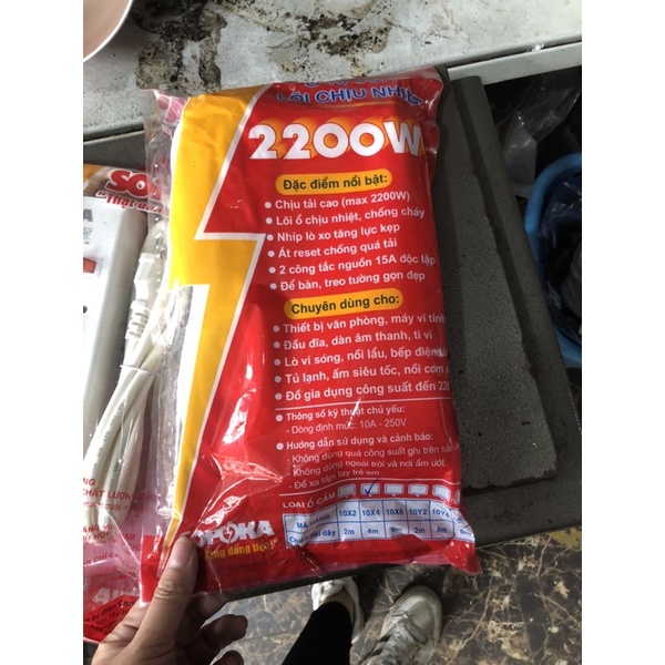Thiết Bị Điện Gia Dụng > Mạch điện & Phụ tùng > Ổ cắm điện & Dây nối || Ổ cắm 10 lỗ có công tắc SOPOKA loại dây2m, dây 4m.Còn hàng
