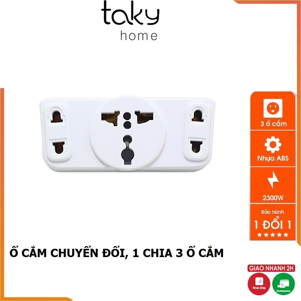 Thiết Bị Điện Gia Dụng > Mạch điện & Phụ tùng > Ổ cắm điện & Dây nối || Ổ Cắm 2 Chức Năng: Phích Cắm Chia 3 Và Ổ Cắm Chuyển Đổi Từ 3 Chấu Thành 2 Thấu, 2000W, Nhựa ABS - TakyHome 8605Còn hàng
