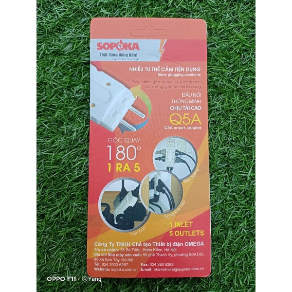 Giới thiệu Ổ cắm 3 chạc 1 chia ra 5 ổ cắm đầu nối thông minh Q5A chịu tải cao góc quay 180 độ SOPOKA
